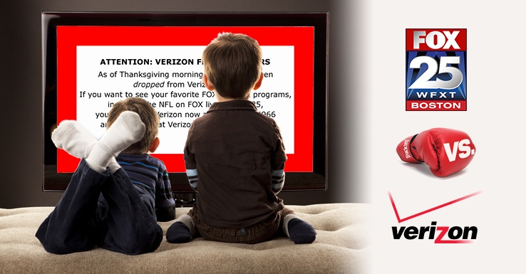 As expected when we told you this last week, FOX 25 went dark at 3am on Thanksgiving due to the dispute. "Unfortunately, so far,Verizon FiOS has refused to reach a fair, market-based deal to carry FOX 25. Our existing agreement with Verizon FiOS has expired, and we cannot provide Verizon FiOS customers with live access to their favorite FOX programs until a new deal is reached."