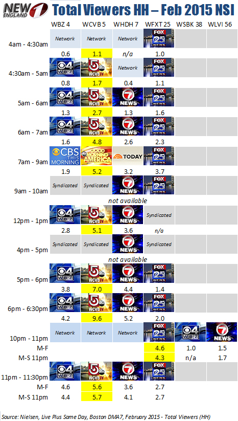 The February 2015 ratings period is now in the books, here is a look at what viewership looks like in Boston.